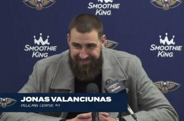 New Orleans Pelicans center Jonas Valanciunas’ postgame interview after the Pelicans’ win against the Charlotte Hornets on Friday, Dec. 15…