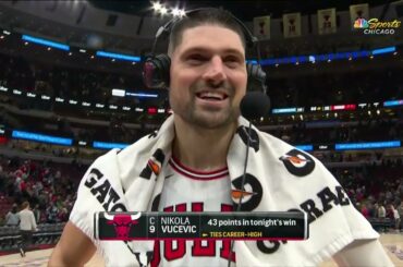 Nikola Vucevic talks about his MONSTER career-high tying 43-PT performance becoming the first Chicago Bulls’ player since Michael Jordan (1996)…