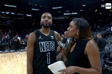 Mikal Bridges talks with Meghan Triplett after the Nets’ win over his former team in Phoenix. Subscribe for daily sports…