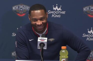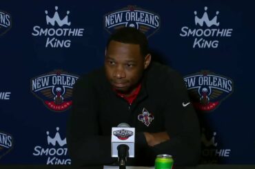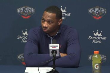 New Orleans Pelicans head coach Willie Green speaks to the media following the Pelicans win over the Oklahoma City Thunder…