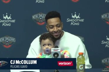 New Orleans Pelicans guard CJ McCollum’s post game interview following the Pelicans game against the Utah Jazz on Thursday, December…