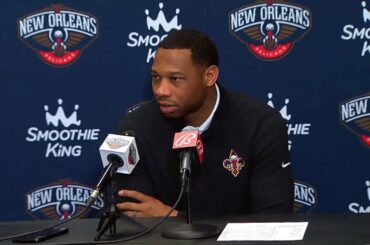 New Orleans Pelicans center/forward Larry Jr. speaks to the media following the loss to the Dallas Mavericks on Thursday, February…