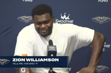 New Orleans Pelicans forward Zion Williamson discusses their game against the Orlando Magic on Tuesday, Oct. 10 during the 2023-24…