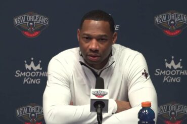 New Orleans Pelicans head coach Willie green speaks to the media following the win over the Minnesota Timberwolves on Wednesday,…