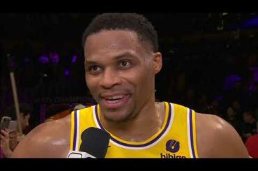 Russell Westbrook fields questions following the Los Angeles Lakers’ win over the Miami Heat despite Anthony Davis and LeBron James…