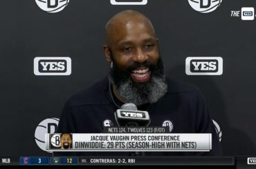 Jacque Vaughn reacts to the 124-123 win over the Timberwolves and discusses his message to the team in the early…