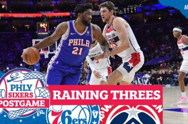 Behind a dominant 34-point performance by Joel Embiid and a never-ending 3-point barrage, the Sixers crushed the Washington Wizards, jumping…