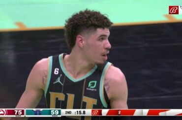 LaMelo Ball was visibly upset after being knocked down with no whistle following his long three ball as the Charlotte…