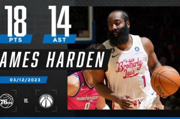 Philadelphia 76ers superstar guard James Harden drops 18 PTS and adds 14 dimes en route to 112-93 over the Washington…
