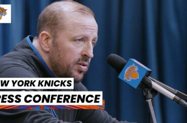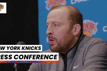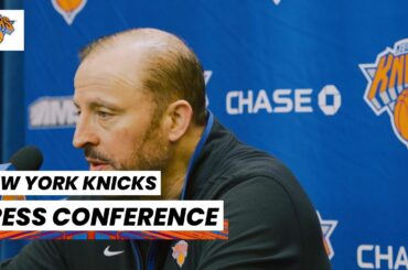 Tom Thibodeau speaks to the media after the New York Knicks win over the Golden State Warriors.