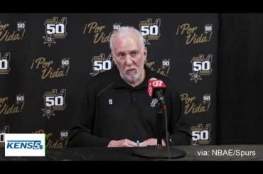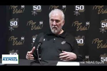 Popovich on win vs Jazz, team playing a full game, defense, Poeltl’s return to the court, calls Branham an “old…