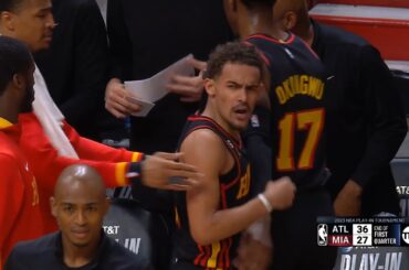 Trae Young held back from ref after no foul called on game tying shot attempt vs Bulls Trae Young held…