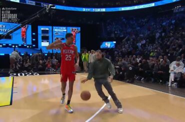 New Orleans Pelicans forward Trey Murphy III’s 1st dunk at the NBA Slam Dunk contest with a sneaky steal and…