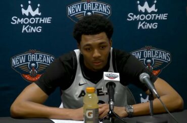 New Orleans Pelicans forward Trey Murphy III speaks to the media following shootaround at the Ochsner Sports Performance Center ahead…