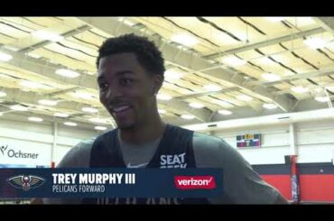 New Orleans Pelicans forward Trey Murphy III postgame interview following Preseason game 5 versus the Atlanta Hawks on Friday, October…