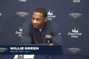 New Orleans Pelicans head coach Willie Green talks about the team’s loss to the Golden State Warriors on October 23,…