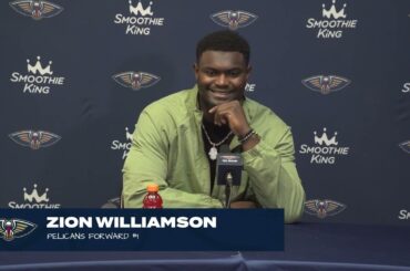 New Orleans Pelicans forward Zion Williamson talks about the team’s loss to the Golden State Warriors on October 23, 2023.…