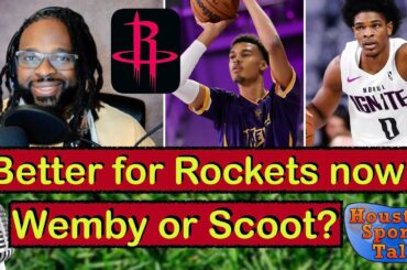 Host Robert Land asks Rockets expert Frank (with Rockets Chop Shop) who improves the Rockets more next season, Scoot Henderson…