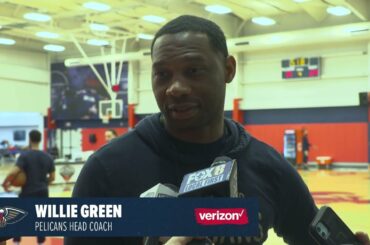 New Orleans Pelicans head coach Willie Green speaks to the media following the win over the Memphis Grizzlies on Wednesday,…