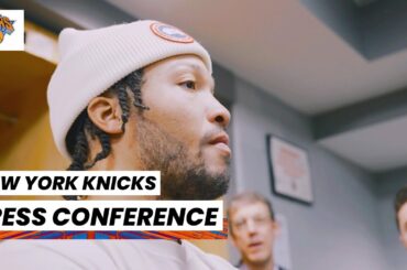 Jalen Brunson speaks to the media after the New York Knicks win over the Chicago Bulls.